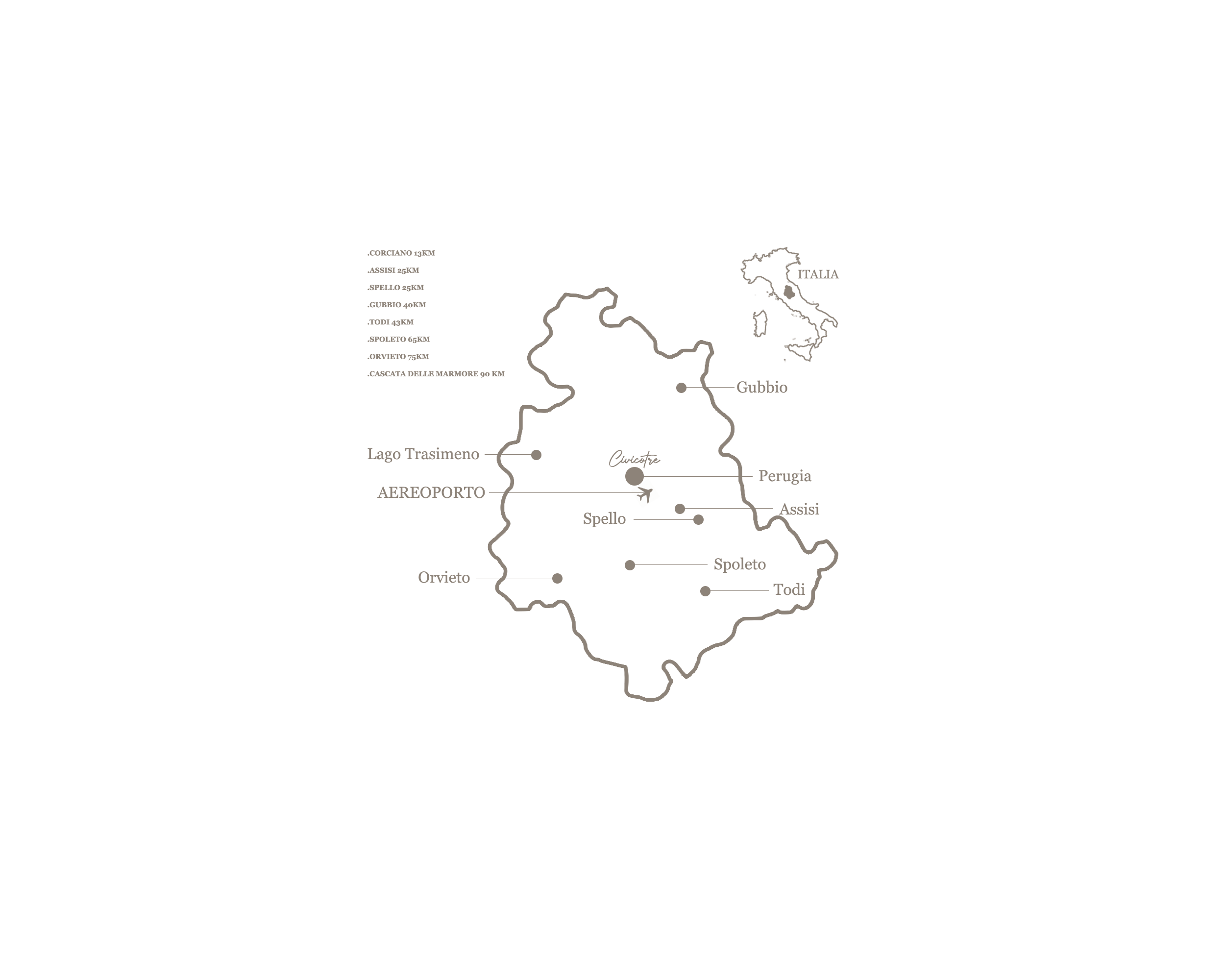 Posizionato in zona Madonna Alta a pochi minuti dal centro di Perugia, gli appartamenti si trovano in una casa di campagna completamente ristrutturata secondo gli standard contemporanei.